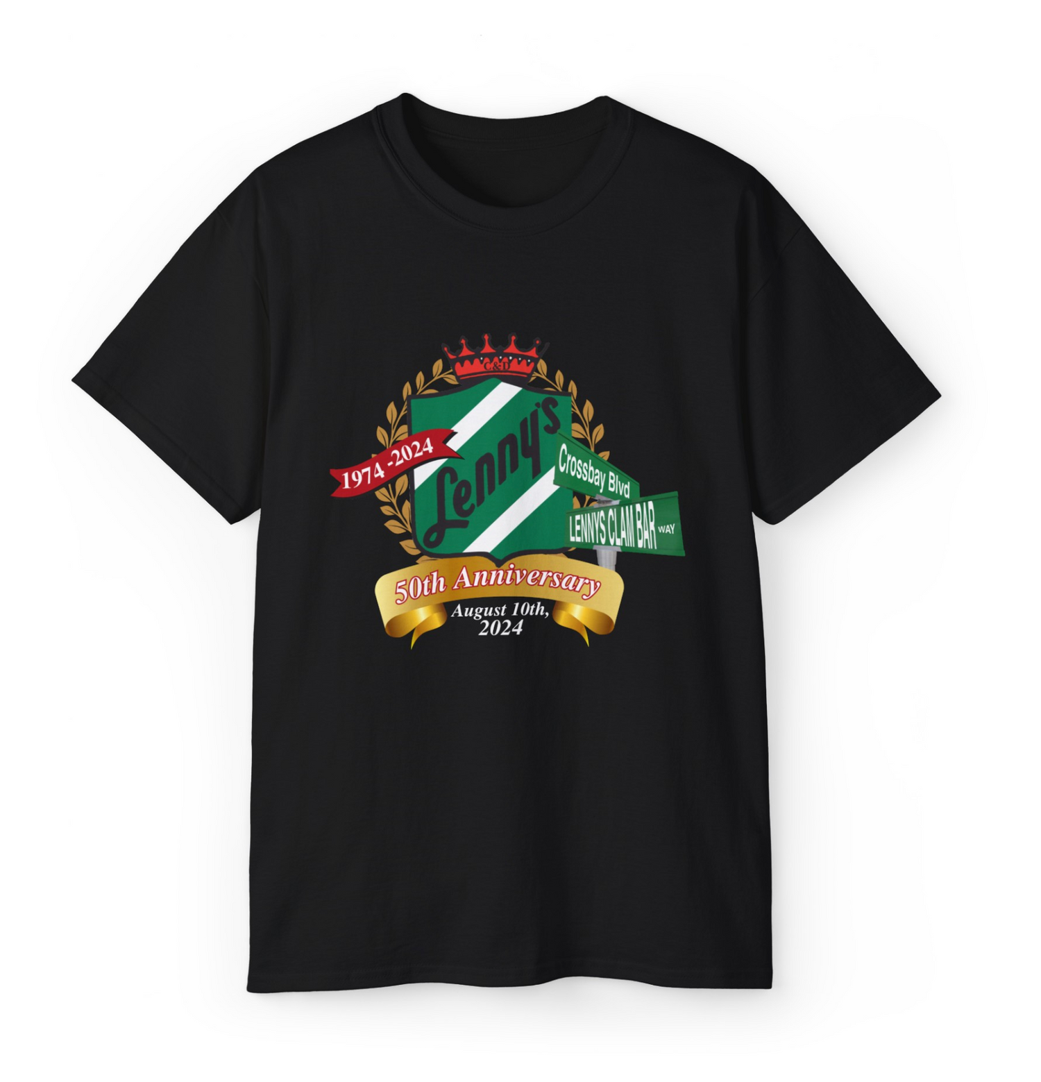 On August 10, 2024 , Cross bay Blvd at 161 Ave. was re-named Lenny's Clam Bar Way! Get your commemorative tee to celebrate 50 years of business in the Howard Beach Community! Check out all the colors available.